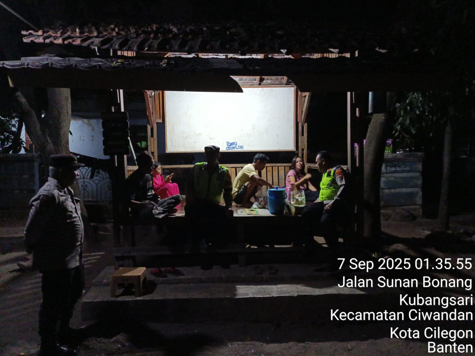 Cilegon - Wakapolsek Ciwandan Polres Cilegon Polda Banten AKP Uup M. Ma'ruf Bersama Forkopimcam Kecamatan Ciwandan kontrol Pos Ronda dan Berikan himbauan kepada pihak terkait dan warga, agar kegiatan Siskamling ditingkatkan lagi, Minggu (07/09/2025).