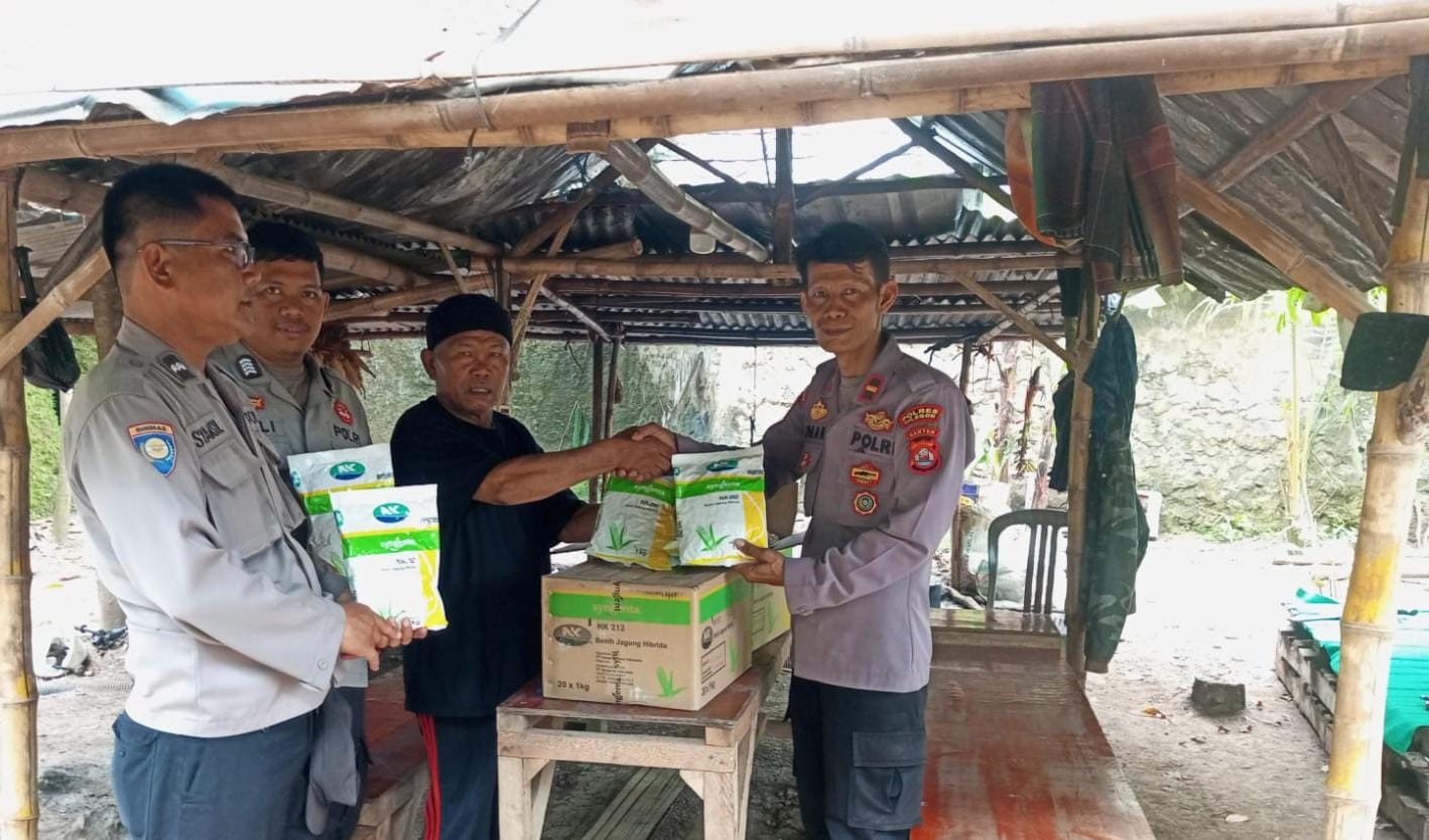 Personil Polsek Anyar Menyalurkan 30 Kg Bibit Jagung Hibrida Kepada Kelompok Tani Kramat Waringin