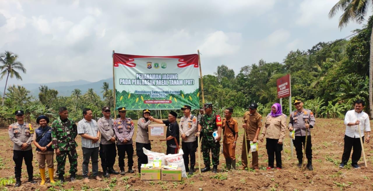 Cilegon - Dalam rangka mendukung program Swasembada Pangan 2025 serta mengimplementasikan Program Prioritas Asta Cinta Presiden Republik Indonesia, Polsek Anyar Polres Cilegon Polda Banten dan Instansi Terkait Kelompok Tani Keramat Waringin melaksanakan kegiatan Penanaman Jagung pada Perluasan Areal Tanam (PAT). Selasa (09/09)