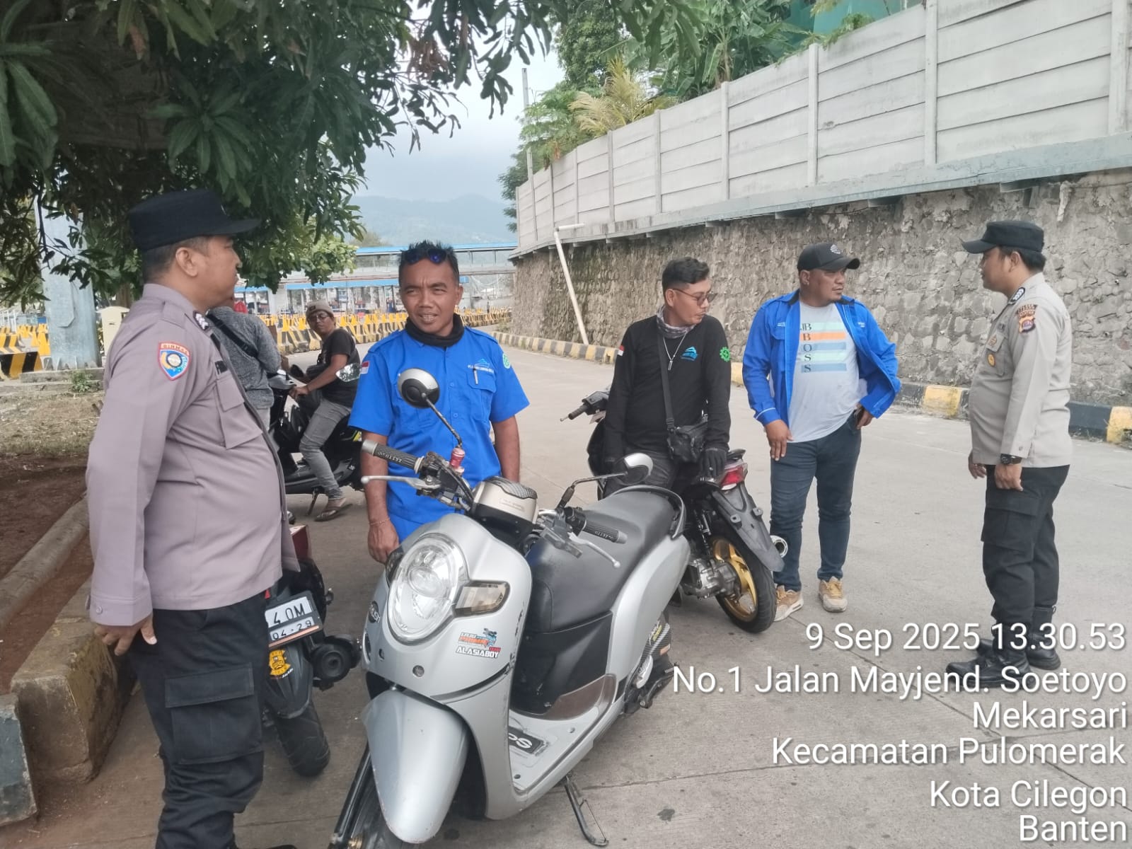 Cilegon - Personel Polsek Kskp Merak Polres Cilegon Polda Banten melaksanakan sambang dan patroli kawasan pelabuhan merak dalam rangka menjaga Harkamtibmas di Kawasan Pelabuhan Merak, Selasa (09/08/2025).