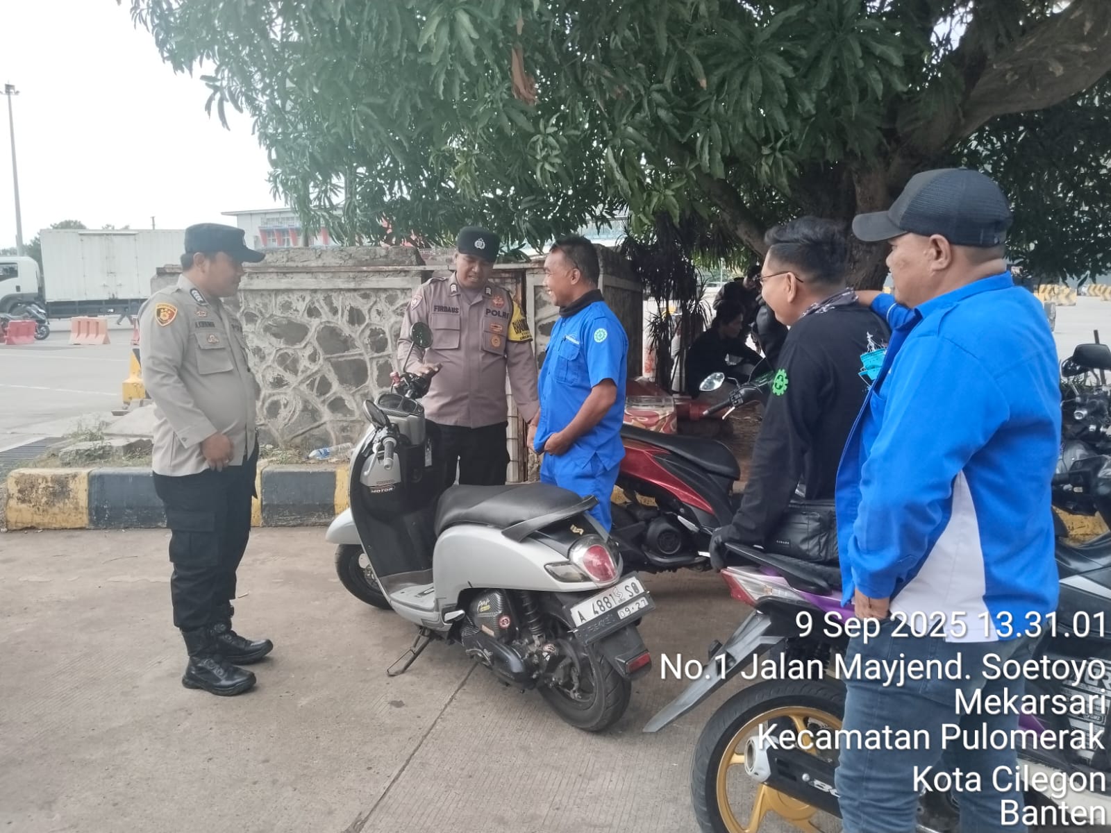 Cilegon - Personel Polsek Kskp Merak Polres Cilegon Polda Banten melaksanakan sambang dan patroli kawasan pelabuhan merak dalam rangka menjaga Harkamtibmas di Kawasan Pelabuhan Merak, Selasa (09/08/2025).