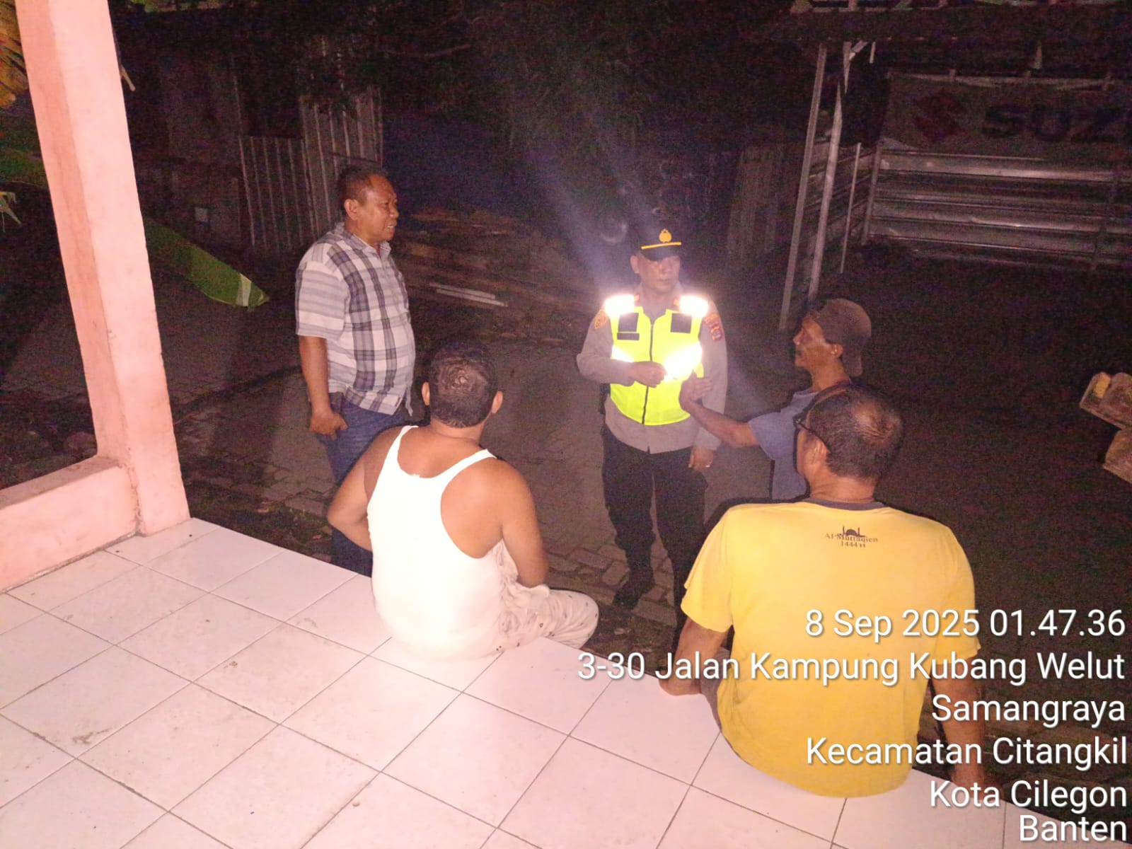 Cilegon - Guna Mencegah Terjadinya Tindak Kejahatan dan Menggiatkan Patroli Pos Ronda Siskamling di Pemukiman warga masyarakat,Personil Polsek Ciwandan Polres Cilegon Polda Banten Mengajak dan memantau pelaksanaan ronda siskamling di lingkungan daerah hukum Polsek Ciwandan, Selasa (09/09/2025).