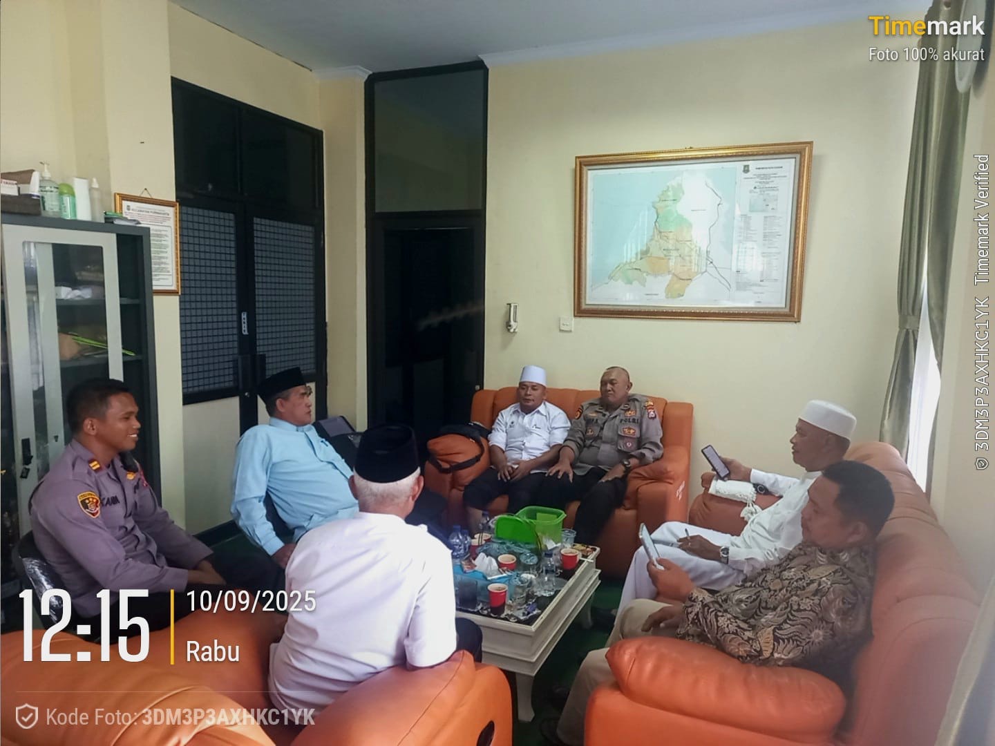 POLRES CILEGON- Polda Banten. Dalam Rangka Menciptakan Kamtibmas tetap Kondusif, Kapolsek Purwakarta Polres Cilegon IPTU Sukanda Jalin silaturahmi Camat Purwakarta Bpk.suaidillah, Tokoh Masyarakat Ulama dan Ulama di Aula Kecamatan Purwakarta Kota Cilegon. Rabu.(10-09-2025).