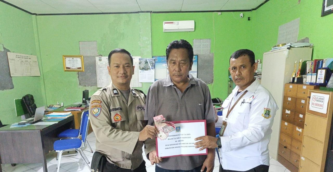 Desa Mekarsari Kec. Anyar dilaksanakan kegiatan penyaluran bantuan BLT-DD Triwulan IV bulan ke 7, 8 dan 9 periode anggaran tahun 2025 yang bertempat di Kantor Desa Mekarsari Kec. Anyar Kab. Serang untuk itu Aiptu Irvan sebagai Bhabinkamtibmas, langsung bergerak melakukan pengamanan dan pengawalan, berdasarkan data Keluarga Penerima Manfaat (KPM) di Desa Mekarsari sebanyak : 40 (Empat puluh) warga masyarakat yang dapat sebagai penerima bantuan berupa uang tunai sebesar @Rp 900.000,- (sembulan ratus ribu rupiah) per 1 (satu) bulan nya dan dibagikan sebanyak 3 bulan.