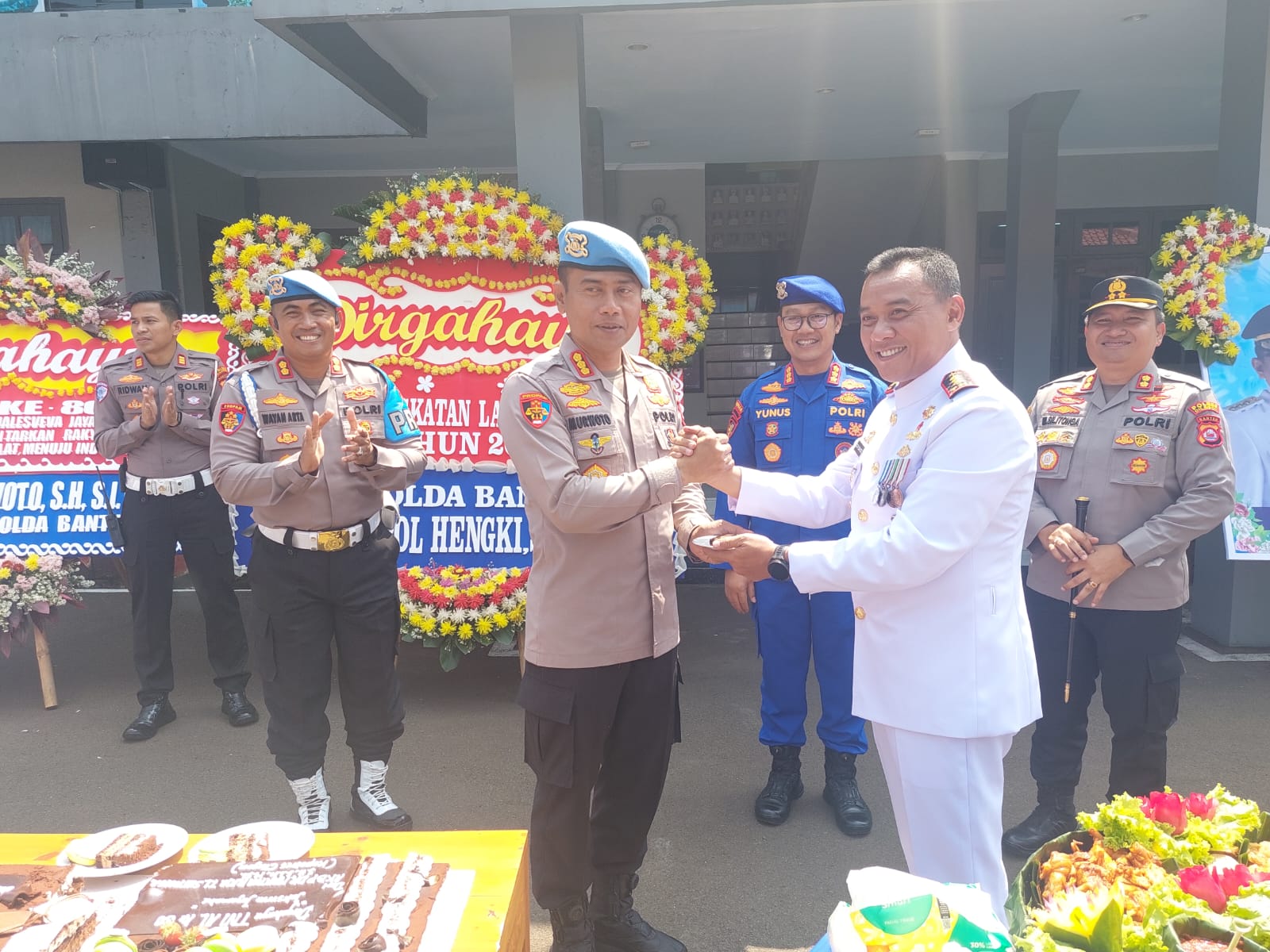 Kapolres Cilegon menyampaikan bahwa momentum HUT ke-80 Lanal Banten menjadi pengingat pentingnya soliditas TNI–Polri dalam menghadapi berbagai tantangan di wilayah hukum Banten, terutama di jalur perhubungan laut dan kawasan industri.