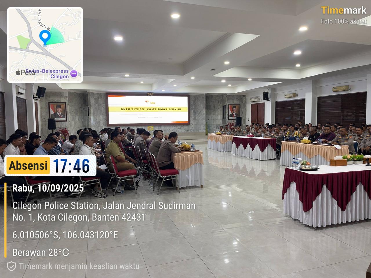Cilegon – Polres Cilegon menggelar rapat bersama dalam rangka Analisa dan Evaluasi (Anev) situasi keamanan dan ketertiban masyarakat (Sitkamtibmas) terkini di wilayah hukum Polres Cilegon. Kegiatan ini berlangsung pada Rabu 10 September 2025 di Aula Wichaksana Laghawa Polres Cilegon, dipimpin langsung oleh Kapolres Cilegon, AKBP Dr. MARTUA RAJA TARIPAR LAUT SILITONGA, S.H., S.I.K., M.Si. serta dihadiri oleh para pejabat utama, Kapolsek jajaran, dan personel terkait.