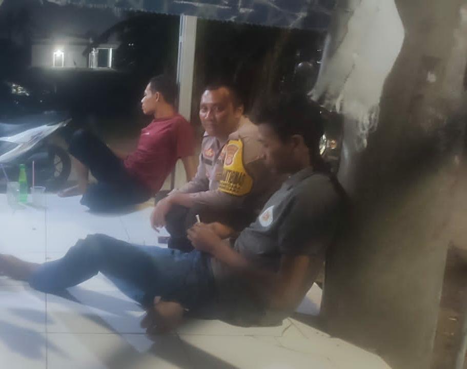 Bhabinkamtibmas menyambangi warga yang sedang duduk-duduk santai dan ngobrol , pada kesempatan yang baik tersebut Bhabinkamtibmas menyampaikan pesan-pesan kamtibmas dan Mengajak masyarakat untuk meningkatkan kewaspadaan serta untuk bersama-sama ikut serta menjaga keamanan lingkungan guna mencegah terjadinya gangguan kamtibmas.