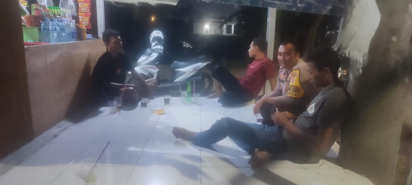 Bhabinkamtibmas menyambangi warga yang sedang duduk-duduk santai dan ngobrol , pada kesempatan yang baik tersebut Bhabinkamtibmas menyampaikan pesan-pesan kamtibmas dan Mengajak masyarakat untuk meningkatkan kewaspadaan serta untuk bersama-sama ikut serta menjaga keamanan lingkungan guna mencegah terjadinya gangguan kamtibmas.