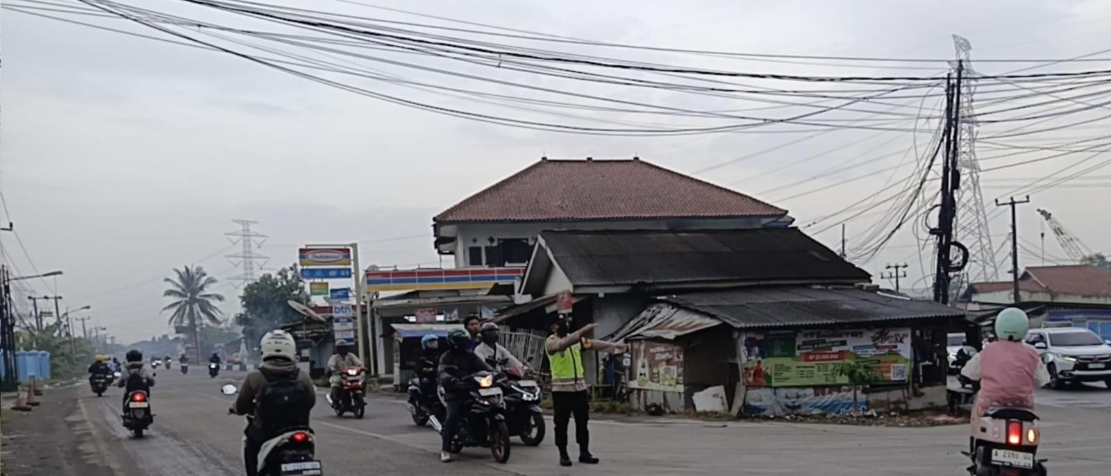 Bhabinkamtibmas Ds. Mekarjaya Polsek Bojonegara Polres Cilegon Ciptakan Ketertiban Dan Keamanan Lalu-lintas Dengan Cara Pengaturan