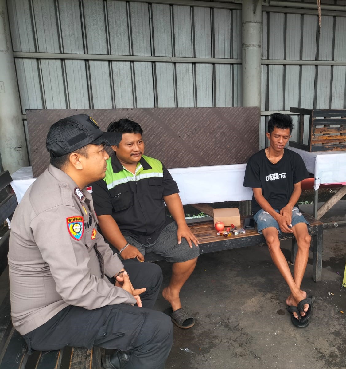 Jalin Silaturahmi, Bhabinkamtibmas Pelabuhan Polsek Kawasan Pelabuhan Banten berbincang ke Buruh Pelabuhan