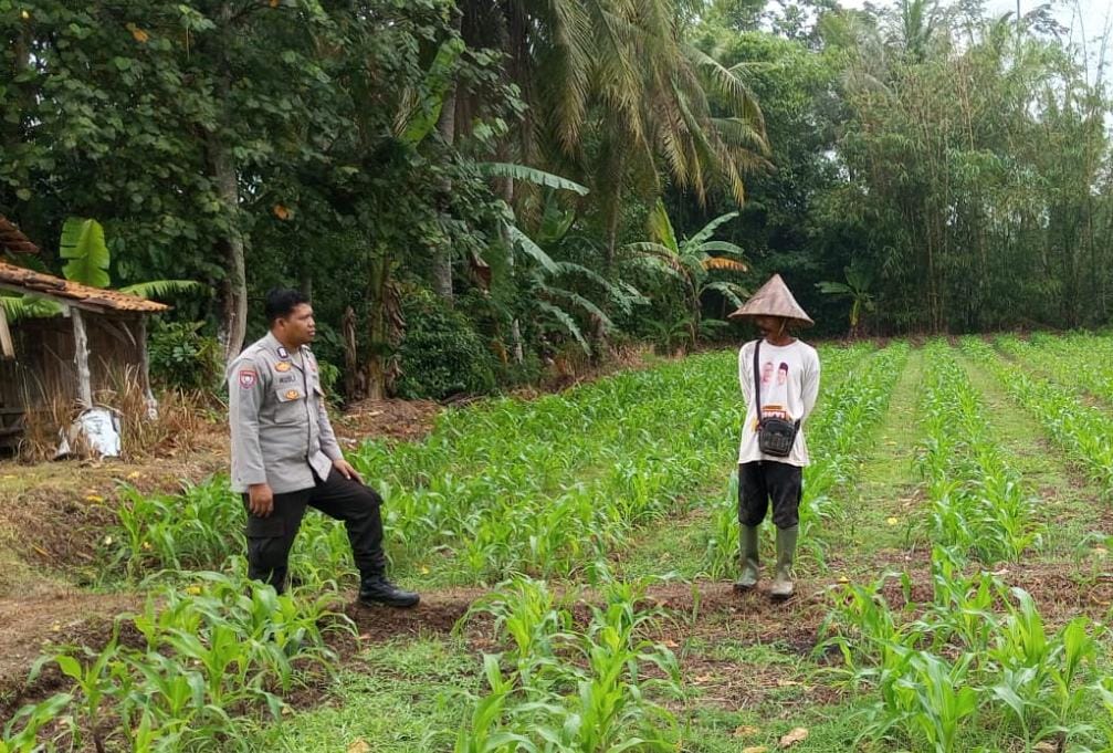 Anggota Bhabinkamtibmas Polsek Anyar Sambangi Petani Cek Lahan Jagung Dukung Program Ketahanan Pangan Nasional