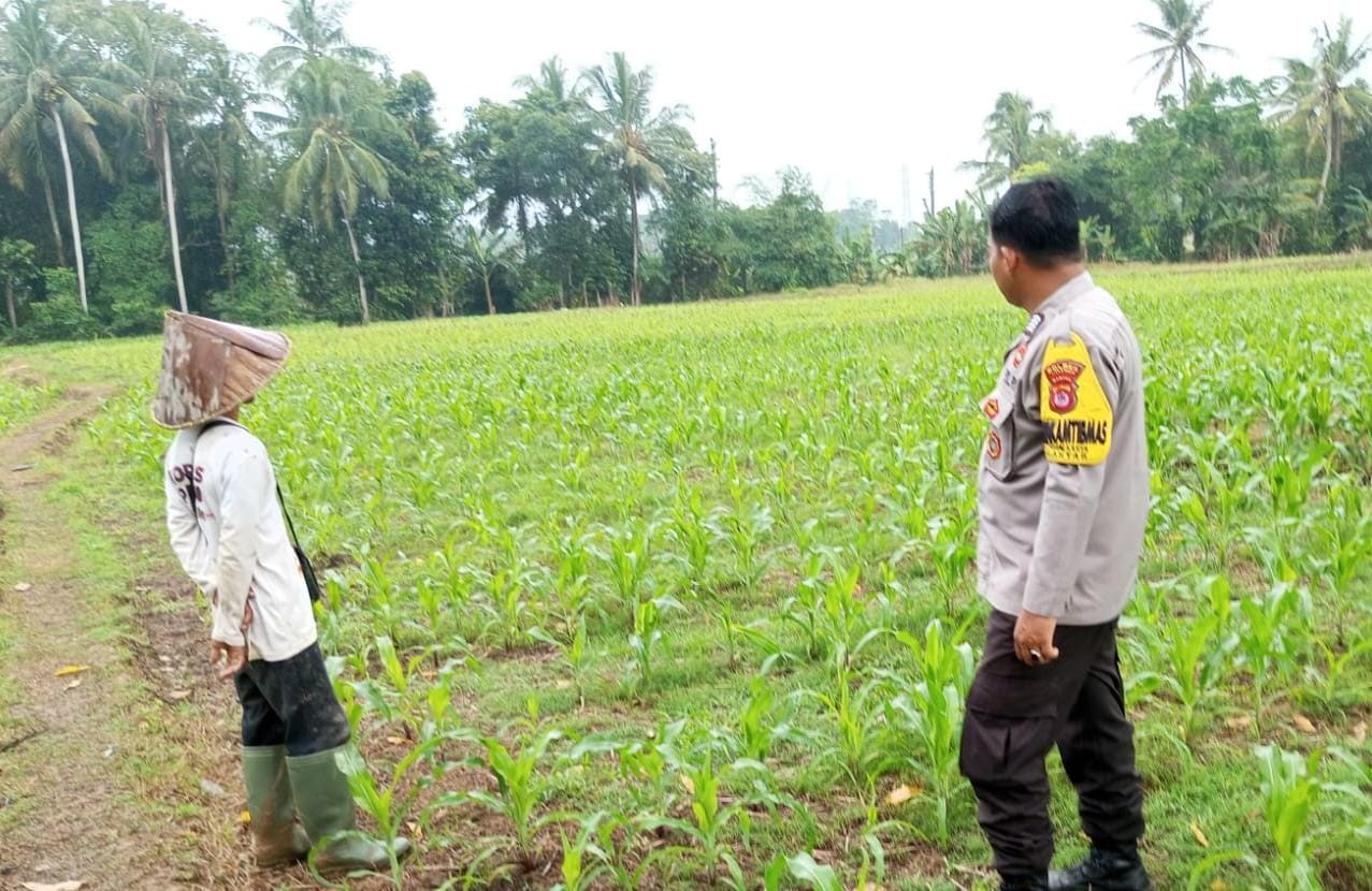 Bhabinkamtibmas Polsek Anyar Sambangi Petani Untuk Cek Lahan Jagung Dalam Mendukung Program Ketahanan Pangan Nasional