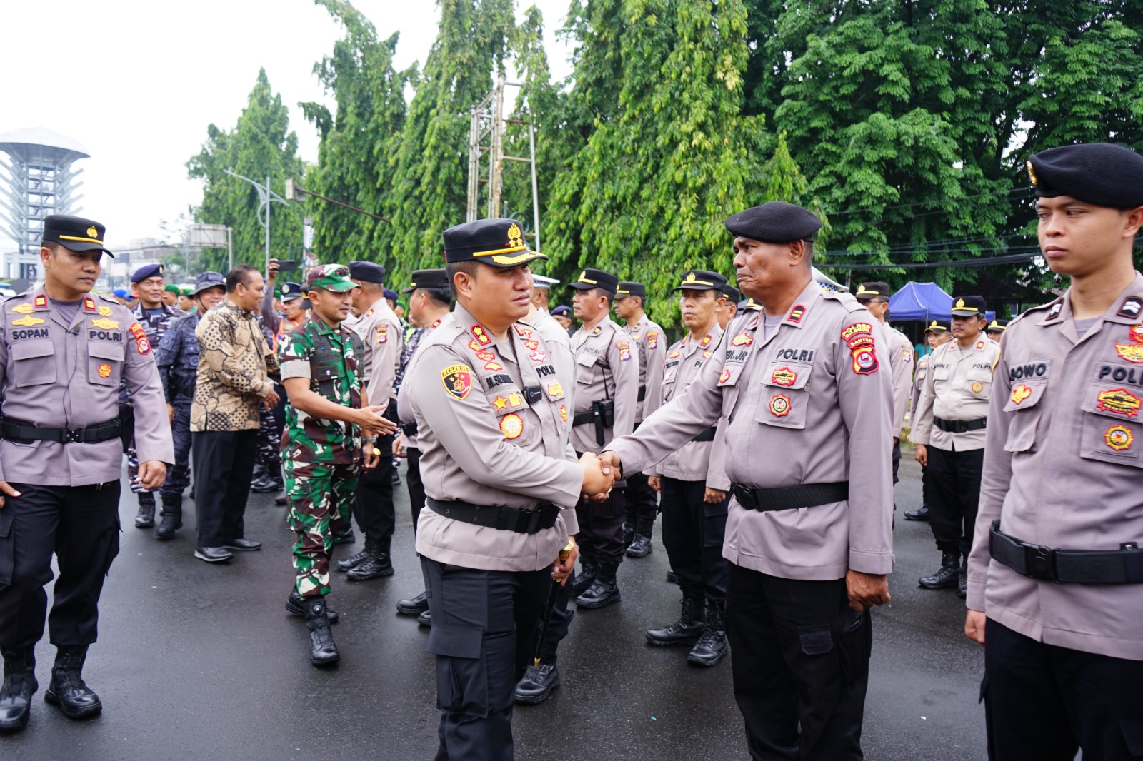 Apel turut dihadiri jajaran Forkopimda Kota Cilegon, perwakilan TNI AL, Kejaksaan Negeri, DPRD Kota Cilegon, Kepala BPBD, pimpinan OPD terkait, hingga tokoh masyarakat. Sementara peserta apel terdiri dari gabungan personel Polres Cilegon, TNI, Lanal Banten, Dishub, Satpol PP, BPBD, Tagana, PMI, Damkar, ORARI, Destana, Forum Kesehatan, hingga karyawan PLN. Sebelum apel dimulai, dilakukan pemeriksaan pasukan dan kesiapan peralatan penunjang.