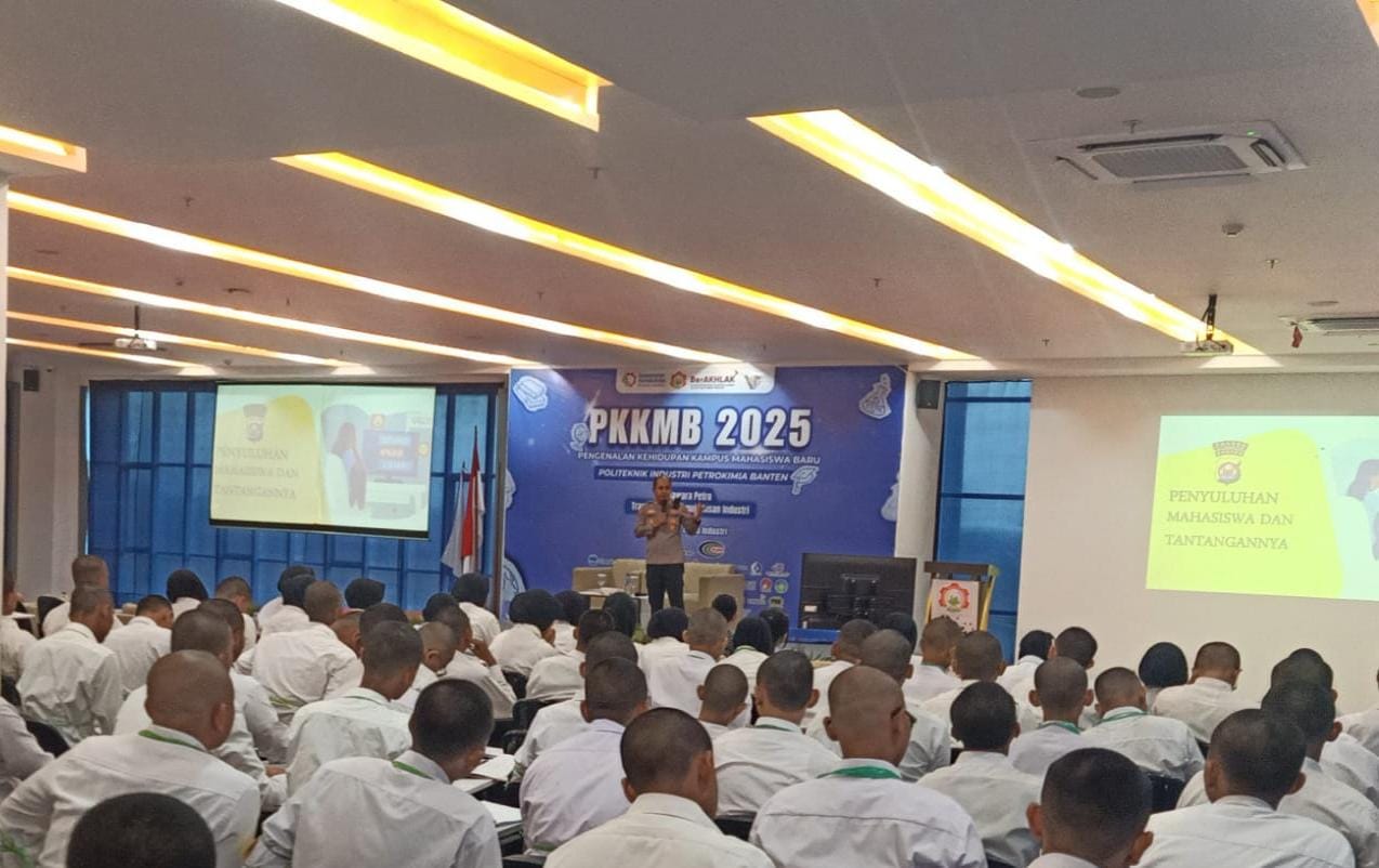 Dalam kesempatan ini Kapolsek Anyar Polres Cilegon Polda Banten IPTU Iwan Sofiyan Lakukan sosialisasi terkait keamanan Kamtibmas kepada Siswa Baru Kampus Politeknik Petro Kimia Desa Cikoneng Kecamatan Anyar.
