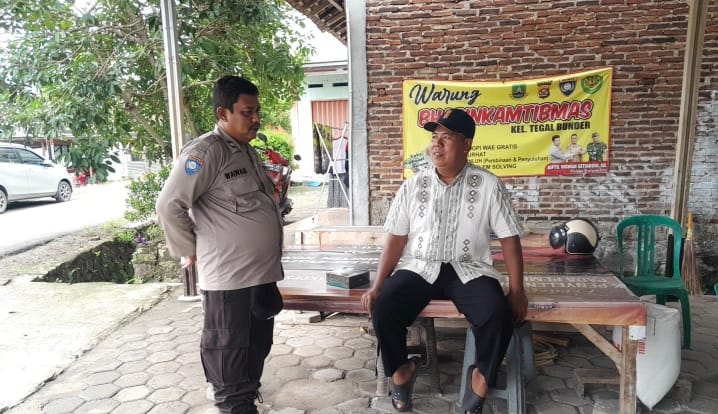 ngobrol asik bersama warga mendengarkan keluh kesah Masyarakat di Warung Kopi Bhabinkamtibmas