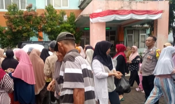 Dalam Pelaksanaan Pengamanan bazar Murah Polri hadir Bhabinkamtibmas Bripka Nugraha memeberikan Rasa aman dan menyampaikan himbauan kamtibmas kepada Masyarakat supaya antri sehingga bazar Murah berjalan tertib dan aman