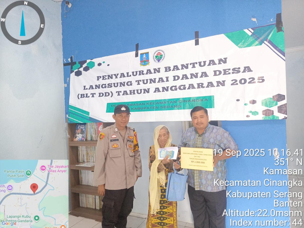 *POLRES CILEGON* ~ Dalam rangka penyaluran Bantuan Langsung Tunai Dana Desa (BLT-DD) di Desa Kamasan, personel Bhabinkamtibmas Polsek Cinangka Polres Cilegon Polda Banten, melaksanakan kegiatan pengamanan dan pengawalan selama kegiatan berlangsung sebagai upaya dalam memberikan rasa aman bagi warga masyarakat penerima bantuan. Jumat (19/09/2025)