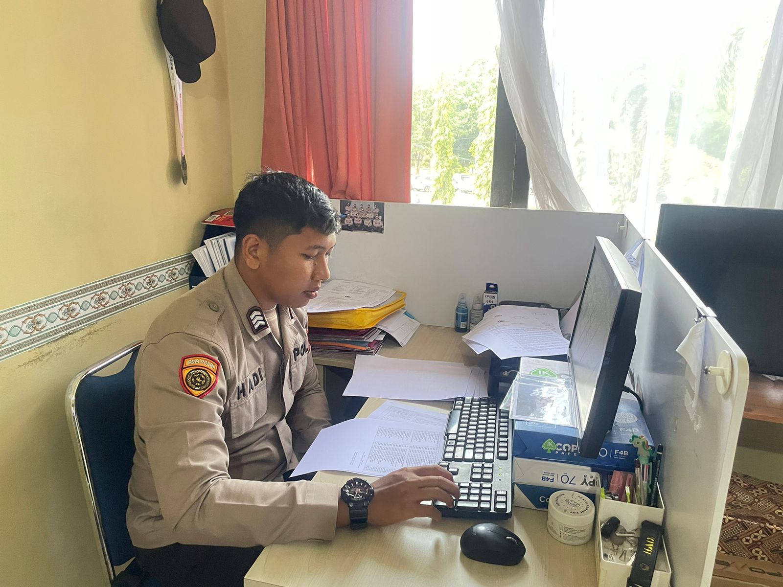 Anggota bag sdm Polres Cilegon, Melaksannan monitoring dan update aplikasi SIPP Polres Cilegon.