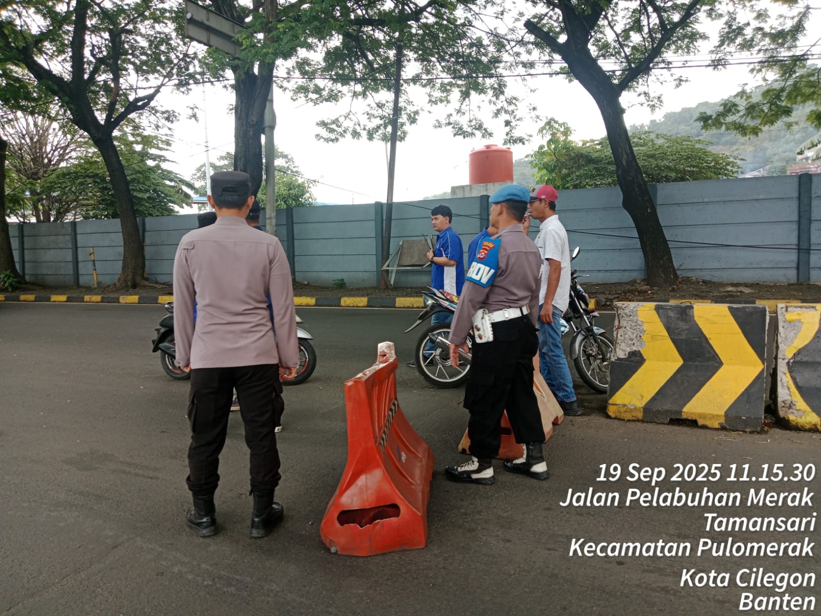 Cilegon - Personel Polsek Kskp Merak Polres Cilegon Polda Banten melaksanakan sambang dan patroli kawasan pelabuhan merak dalam rangka menjaga Harkamtibmas di Kawasan Pelabuhan Merak, Jumat (19/08/2025).
