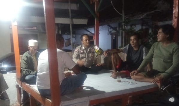 Cilegon - Personel Bhabinkamtibmas Polsek Anyar Polres Cilegon Polda Banten Aipda Samsul melaksanakan sambang Ronda Siskamling Dalam rangka menjaga Harkamtibmas perum BWA Ds. Mekarsari Kec. Anyar, dan Sebagai bentuk mendukung Program Quick Wins Presisi Polri.