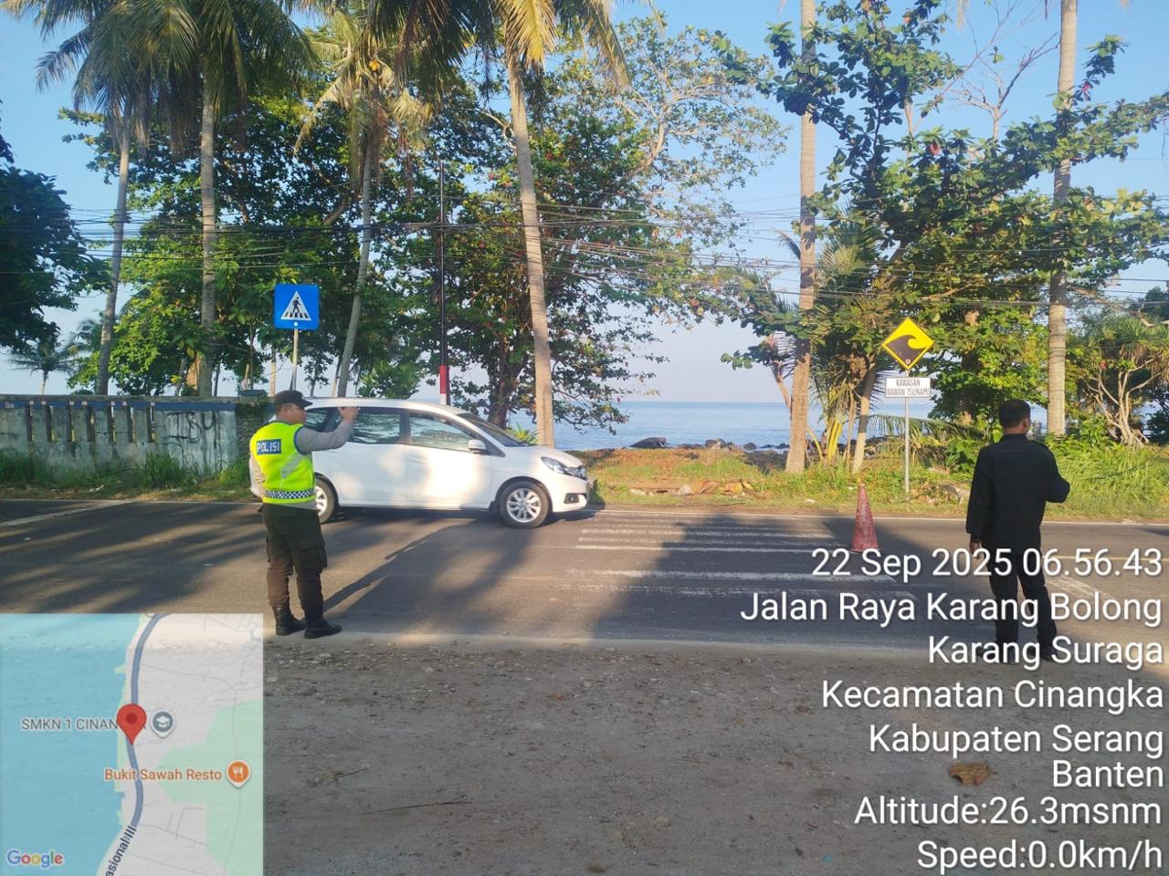 _*Polres Cilegon*_ | Laksanakan peningkatan pelayanan Prima, Polsek Cinangka Polres Cilegon Polda Banten melaksanakan pengaturan arus lalu lintas, Senin (22/09/2025)