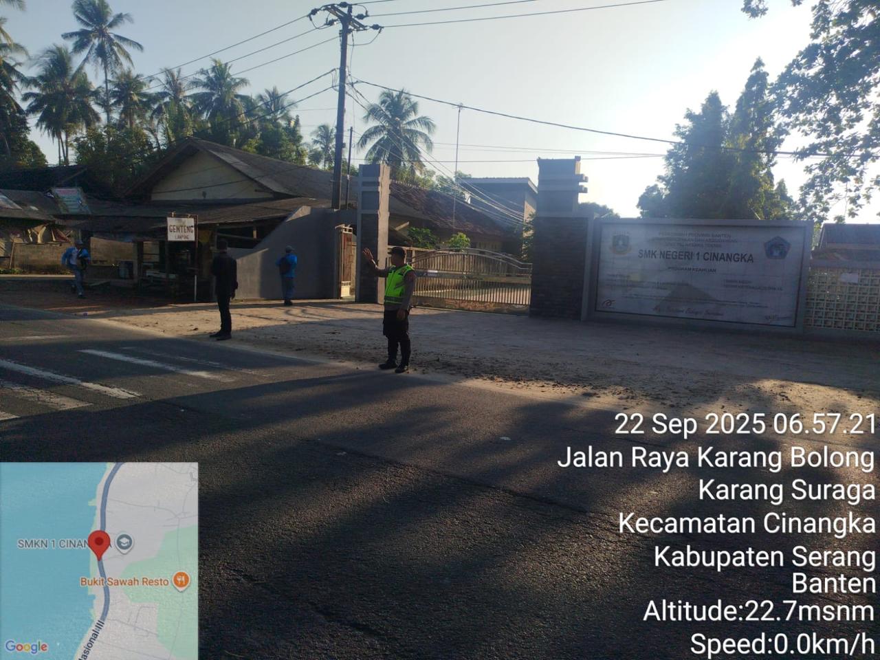 _*Polres Cilegon*_ | Laksanakan peningkatan pelayanan Prima, Polsek Cinangka Polres Cilegon Polda Banten melaksanakan pengaturan arus lalu lintas, Senin (22/09/2025)