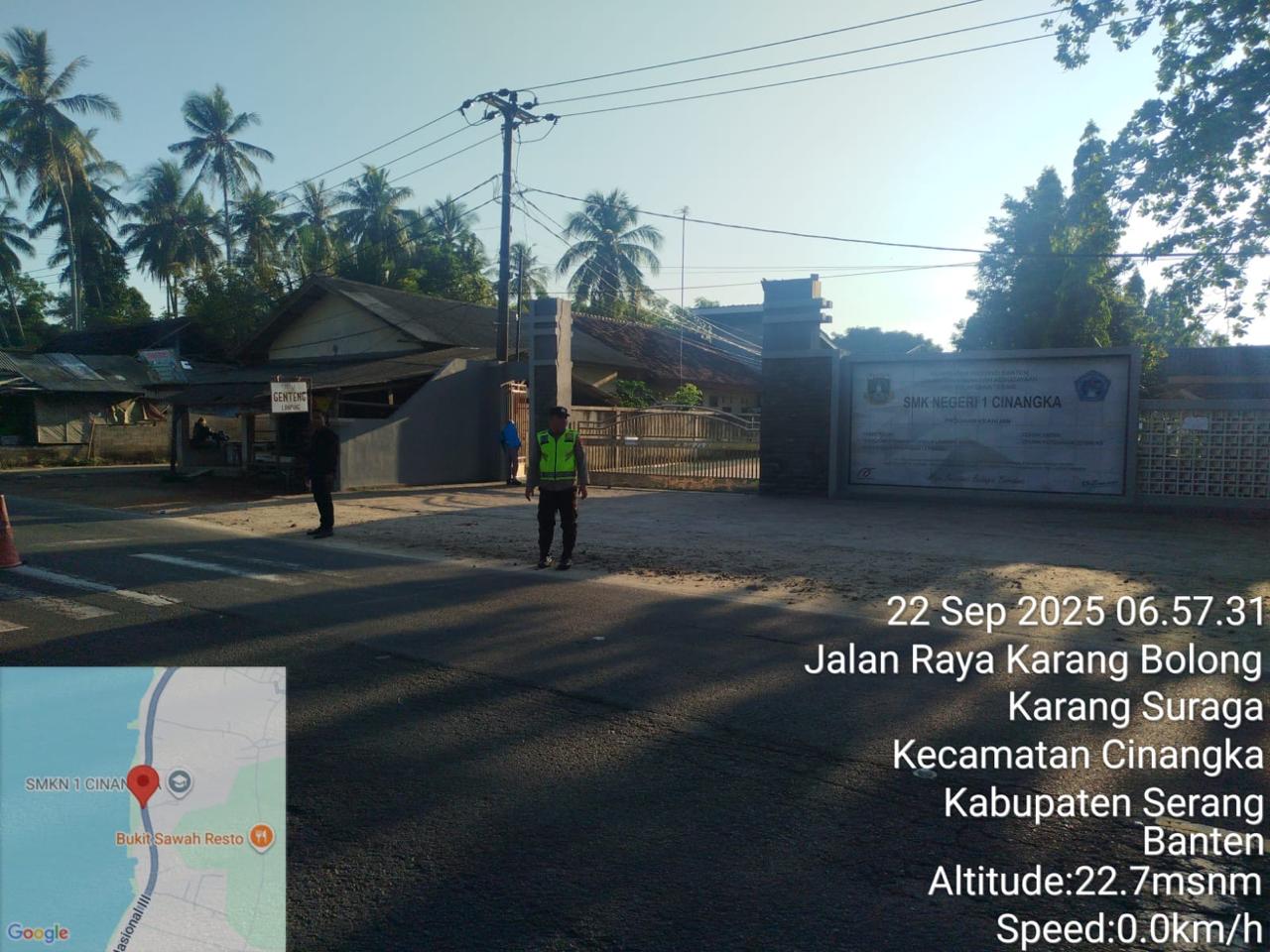 _*Polres Cilegon*_ | Laksanakan peningkatan pelayanan Prima, Polsek Cinangka Polres Cilegon Polda Banten melaksanakan pengaturan arus lalu lintas, Senin (22/09/2025)