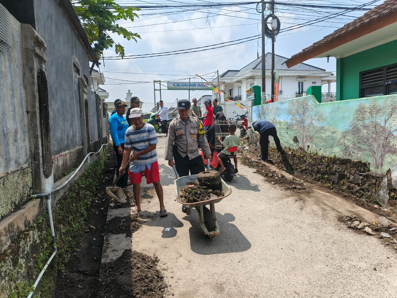 Personel Bhabinkamtibmas Polsek Anyar Polres Cilegon Polda Banten Aiptu Irvan selaku Bhabinkamtibmas Ds. Mekarsari Kec. Anyar Kab. Serang melaksanakan Sambang dialogis dan dengan Masyarakat serta melaksanakan gotong royong, Senin (22/09).