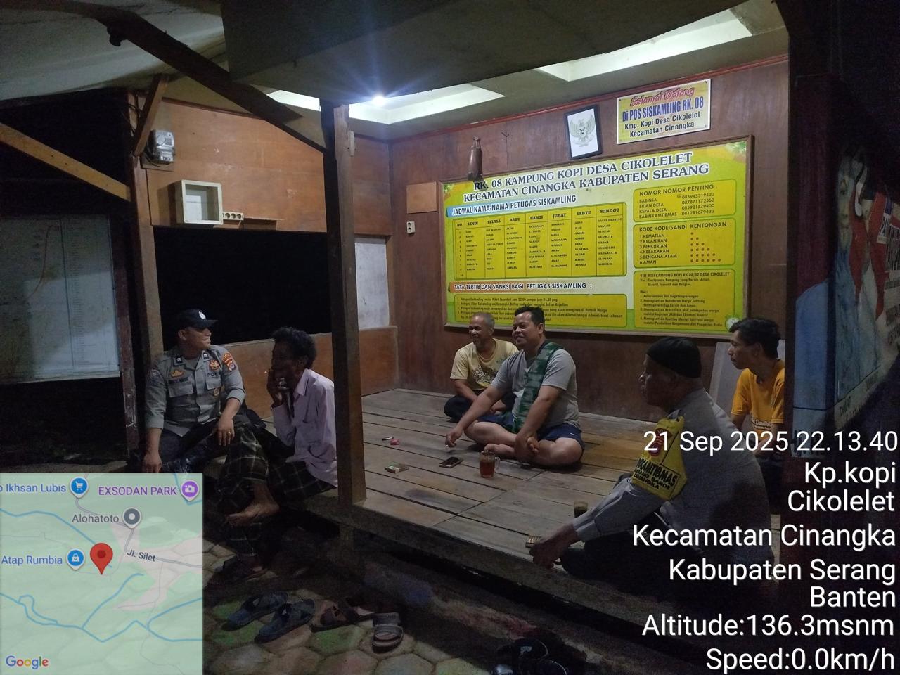 *Polres Cilegon* || Personel Bhabinkamtibmas Polsek Cinangka melaksanakan Program Komandan Wish Kapolda Banten RONDA SATKAMLING menyampaikan komunikasi dengan Petugas Siskamling agar berperan aktif dalam menciptakan Harkamtibmas yang aman dan Kondusif, Senin (22/09/2025).