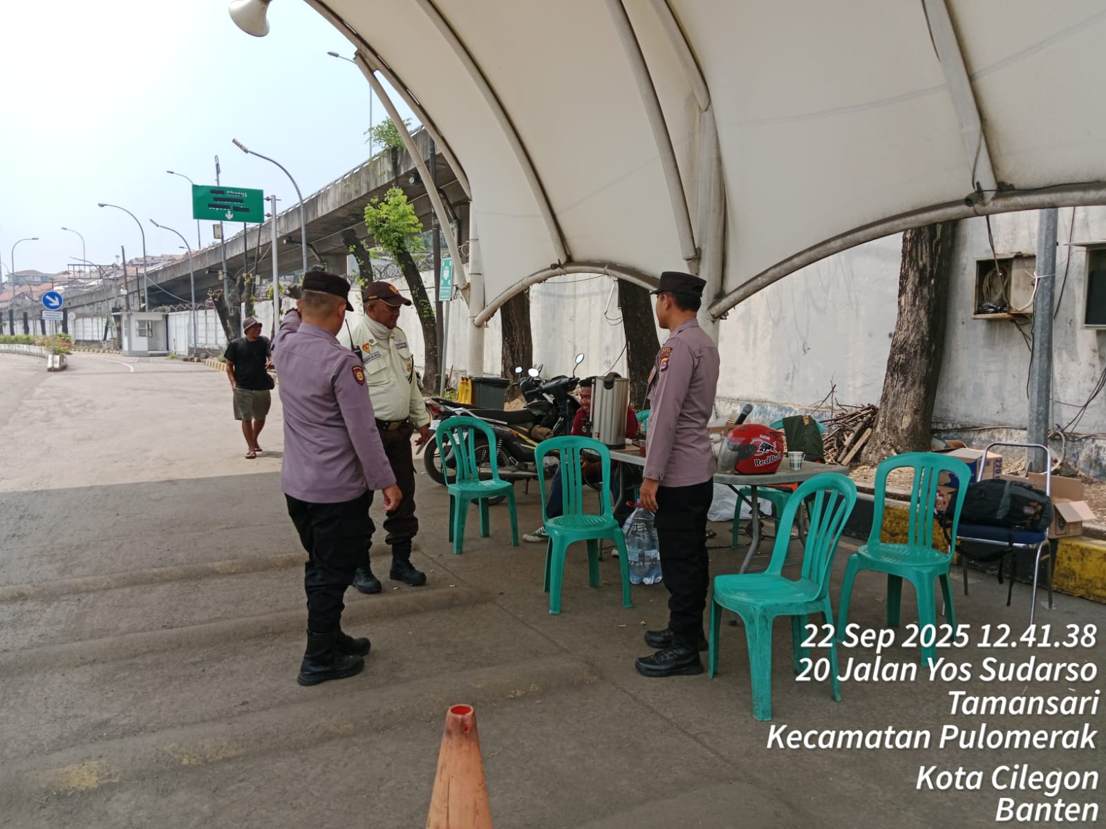 Cilegon - Personel Polsek Kskp Merak Polres Cilegon Polda Banten melaksanakan sambang dan patroli kawasan pelabuhan merak dalam rangka menjaga Harkamtibmas di Kawasan Pelabuhan Merak, Senin (22/08/2025).
