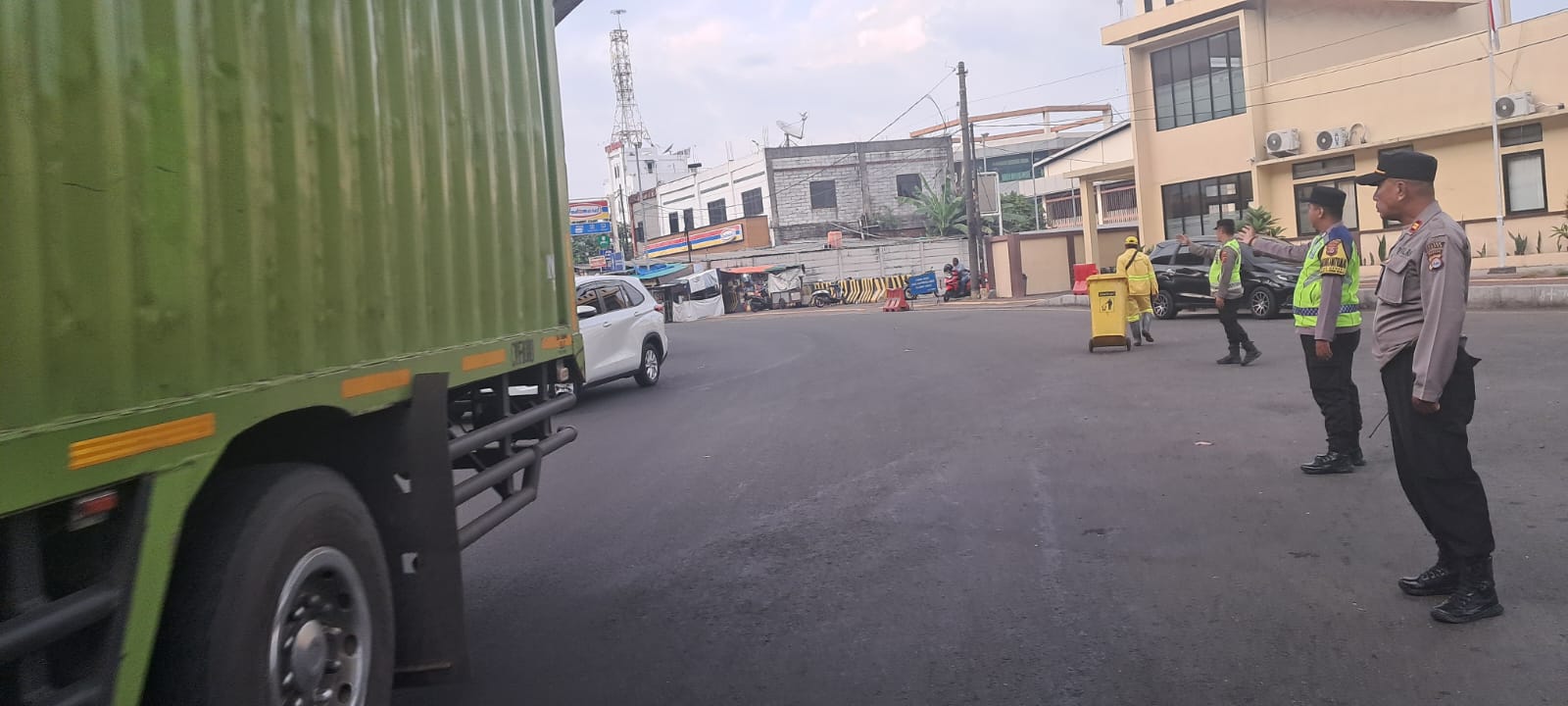 Personil Polsek KSKP Merak Atur Antrian Kendaraan di Pelabuhan Merak