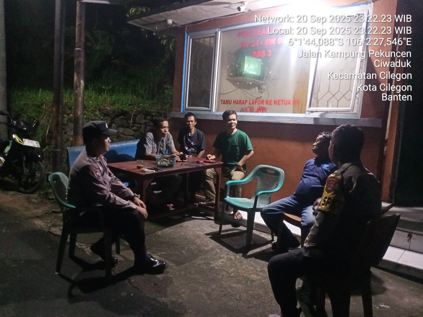 POLRES CILEGON- Polda Banten. Dalam Rangka Ciptakan situasi kamtibmas kondusif Polsek Cilegon laksanakan himbauan kamtibmas kepada rt dan rw serta warga sekitar agar selalu menjaga kamtibmas secara bersama-sama salah satunya mengaktifkan dan meningkatkan kegiatan siskamling di wilayahnya. serta sebagai Cooling Sistem Kamtibmas di wilayah binaan agar Aman, Kondusif dan terkendali. Rabu (24/09/2025).