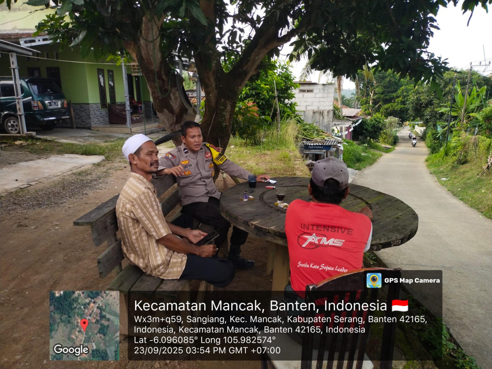 Mancak - Sebagai Pengemban Fungsi Harkamtibmas, Bhabinkamtibmas AIPDA IPUNG YK Polsek Mancak Polres Cilegon Laksanakan Sambang dan Silaturahmi kepada Tokoh Masyarakat Ds Sangiang Kec. Mancak Kab. Serang. Selasa (23/09/2025).