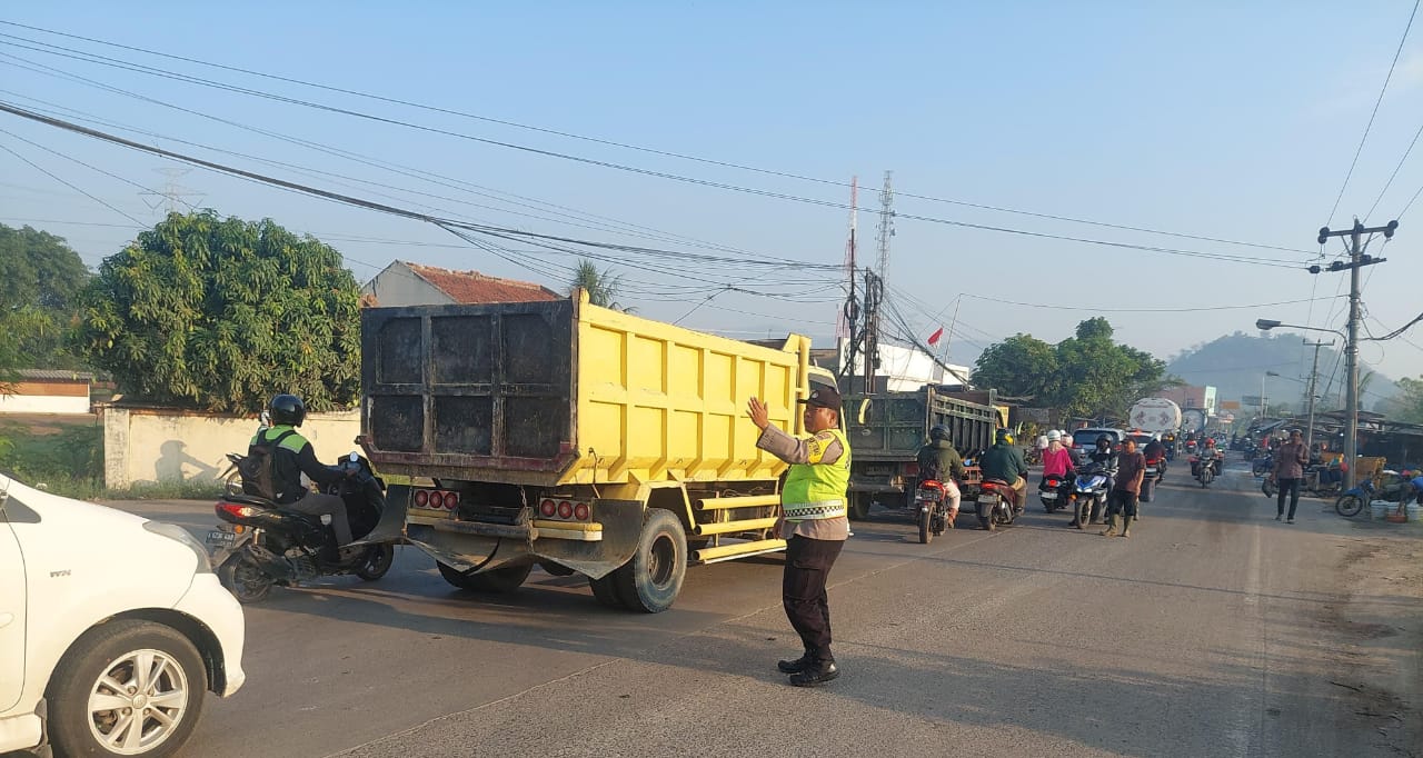 Brigadir Andri dan Bripka Geri Polsek Bojonegara Lakukan Pengamanan dan Pengaturan Lalin di Pelelangan Ikan Bojonegara