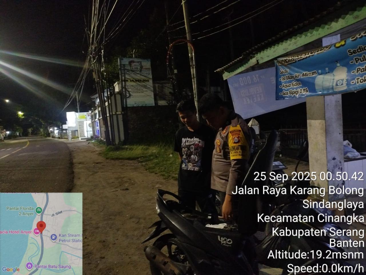 -*POLRES CILEGON*-Polda Banten. Dalam rangka Menjaga situasi kamtibmas kondusif mencegah terjadinya gangguan Kamtibmas Premanisme, Kriminalitas di wilayah Personil Piket Polsek Cinangka mencegah dan Menekan Para Pelaku kejahatan dengan Patroli Blue Light yang di Lakukan Polsek Cinangka gencar Patroli Blue Light dini hari di Wilkum Cinangka Kab Serang . Kamis (25/07/2025)