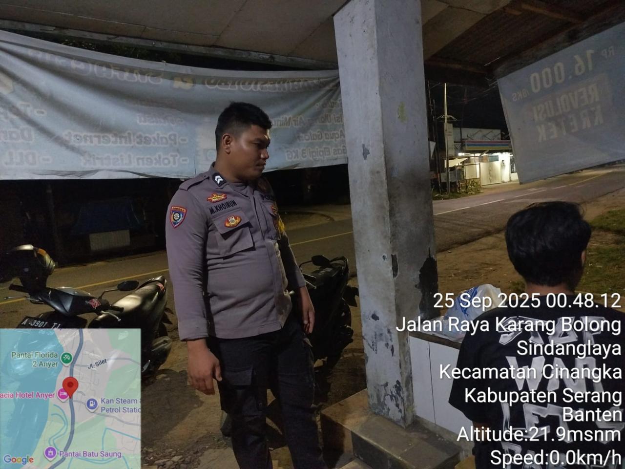 -*POLRES CILEGON*-Polda Banten. Dalam rangka Menjaga situasi kamtibmas kondusif mencegah terjadinya gangguan Kamtibmas Premanisme, Kriminalitas di wilayah Personil Piket Polsek Cinangka mencegah dan Menekan Para Pelaku kejahatan dengan Patroli Blue Light yang di Lakukan Polsek Cinangka gencar Patroli Blue Light dini hari di Wilkum Cinangka Kab Serang . Kamis (25/07/2025)