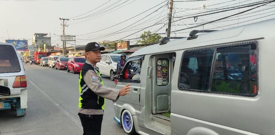 Personil Polsek Anyar Pengaturan Lalu Lintas Untuk Kelancaran Jalur Kendaraan