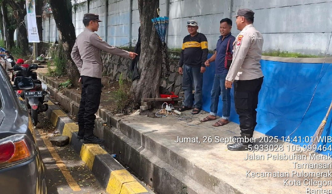 Cilegon - Personel Polsek Kskp Merak Polres Cilegon Polda Banten melaksanakan sambang dan patroli kawasan pelabuhan merak dalam rangka menjaga Harkamtibmas di Kawasan Pelabuhan Merak, Jumat (26/09/2025).