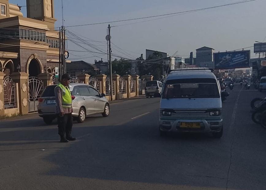 Personel Polsek Anyar Lakukan Pengaturan Lalu Lintas Lancarkan Jalur Kendaraan