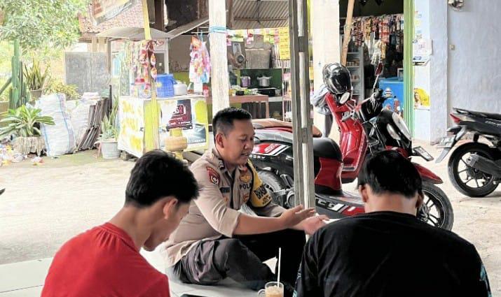 Sosialisasi Call Center 110, Brigadir Andri Bhabinkamtibmas Polsek Bojonegara Polsek Bojonegara Polres Cilegon Berbincang Bincang dengan masyarakat Di Warung Bhabin Edukasi Kamtibmas