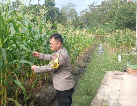 Pengecekan Tanaman Jagung Yang di Lakukan Personil Bhabinkamtibmas Polsek Purwakarta Polres Cilegon Aiptu Daryo.E bersama warga Binaan di wilayah Kelurahan menyampaikan kepada warga Mendukung merupakan wujud Polri Mendukung Program Ketahanan Pangan Pemerintah yang sukses serta Kedepan Indonesia Menciptakan Swasembada Pangan di Bidang Ketahanan Pangan Tanaman Jagung Polri Kwalitas Unggul ekspor Sehingga Masyarakat Maju dan Sejahtera serta memberikan Penyuluhan Polri hadir untuk Masyarakat menjadi wujud Polri peduli dan mendukung penuh Asta Cita Presiden Republik Indonesia bidang Ketahanan Pangan sebagai Langkah dalam membangun desa yang mandiri, aman, dan sejahtera, sejalan dengan upaya mewujudkan ketahanan pangan nasional yang berkelanjutan.