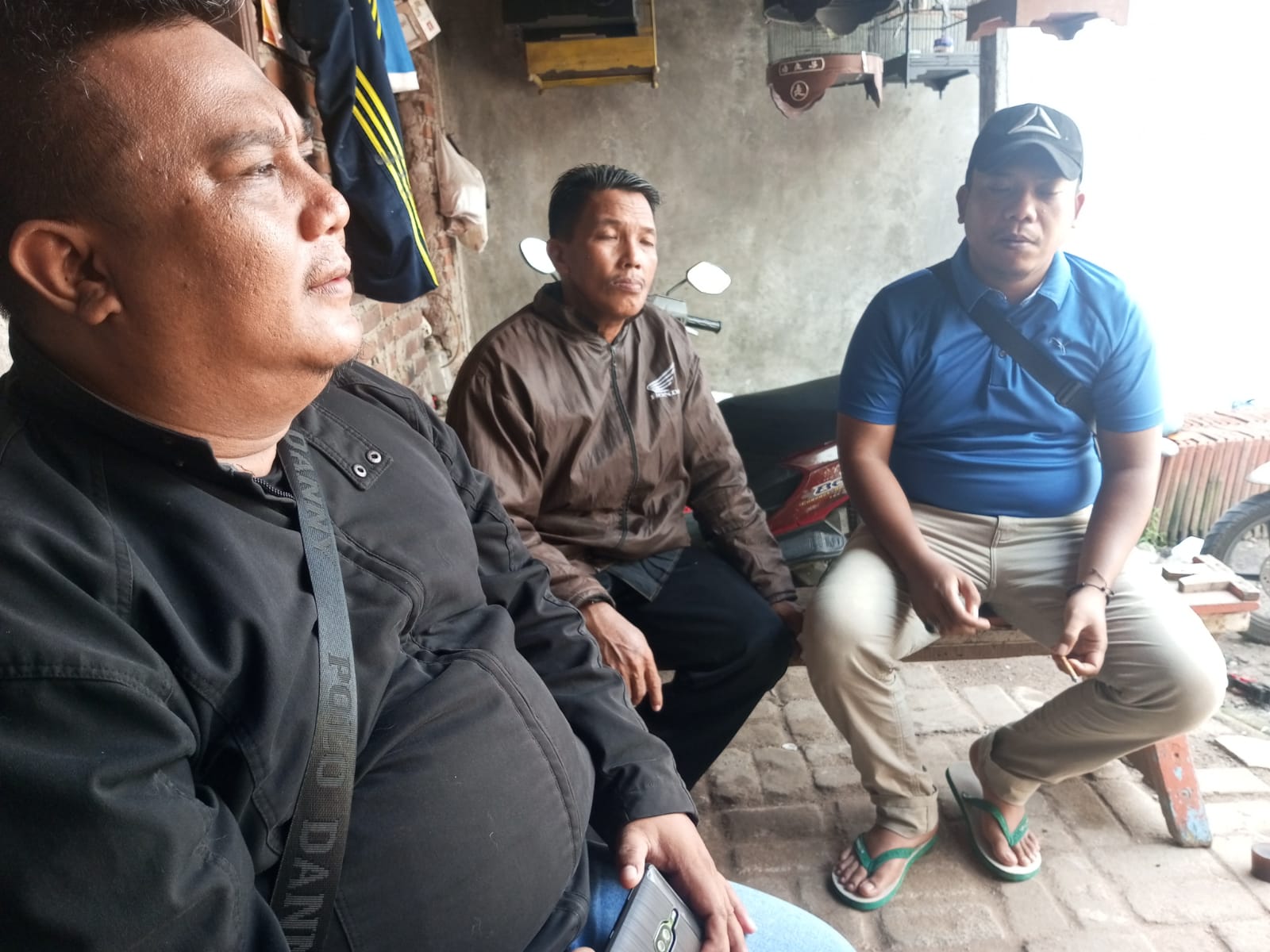 Personil sat intelkam melakukan koordinasi dengan tokoh masyarakat kelurahan kalitimbang kec. Cibeber kota cilegon.