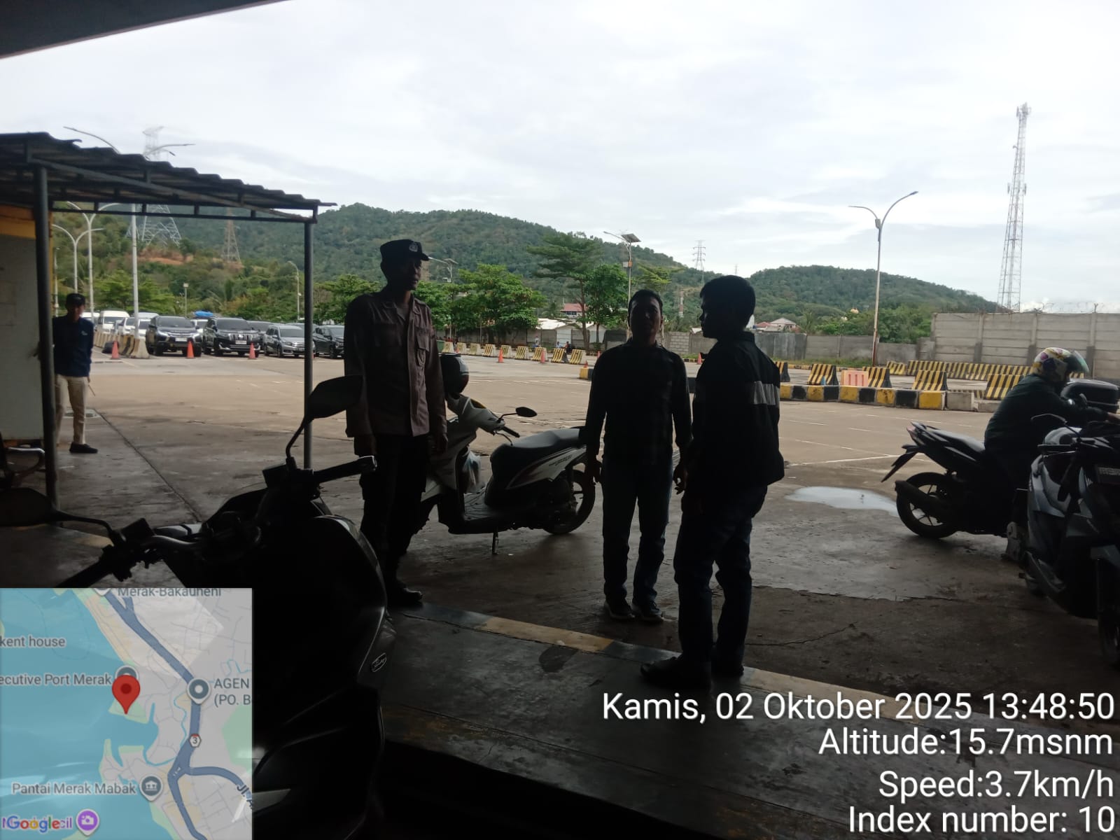 Cilegon - Personel Polsek Kskp Merak Polres Cilegon Polda Banten melaksanakan sambang dan patroli kawasan pelabuhan merak dalam rangka menjaga Harkamtibmas di Kawasan Pelabuhan Merak, Kamis (02/10/2025).