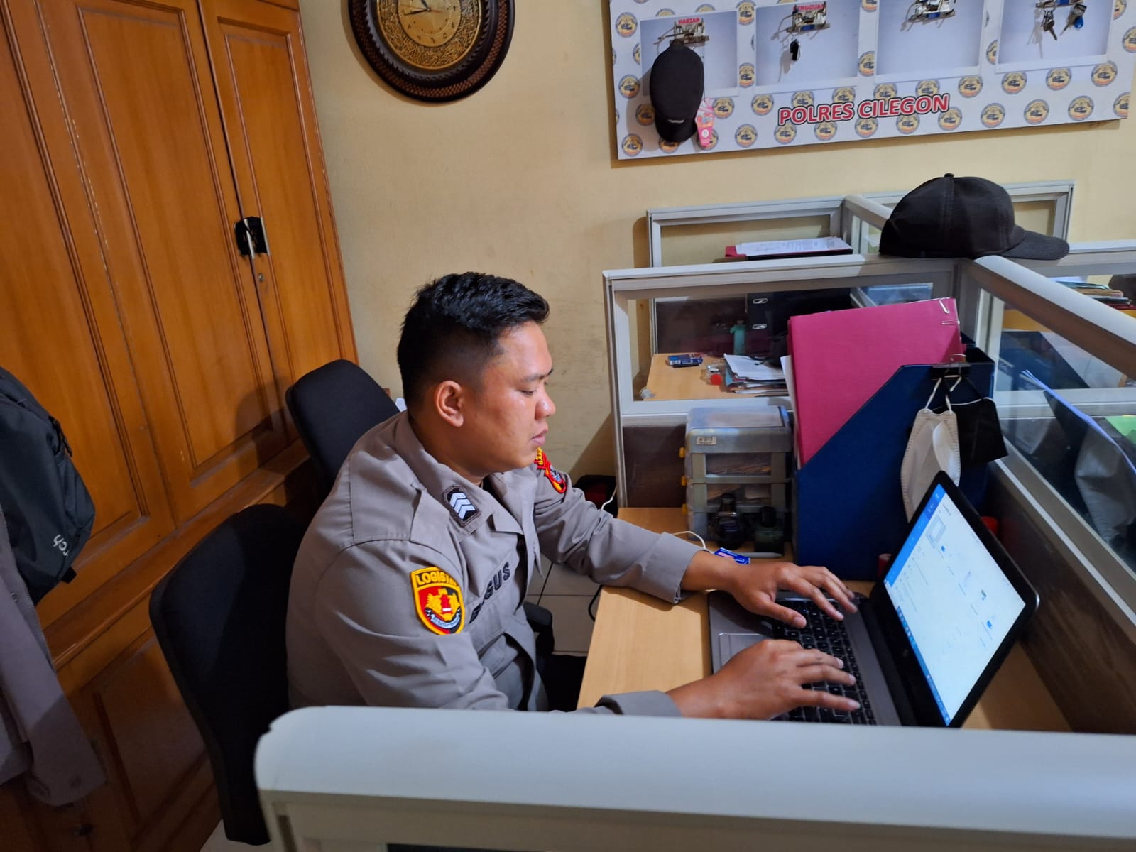 cilegon Polda Banten Staf Logistik melakukan pengisian aplikasi SIMAK dan SIMAN