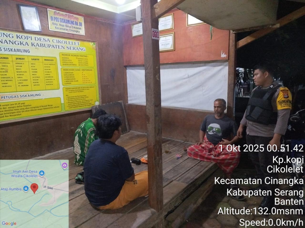 *Polres Cilegon* || Personel Bhabinkamtibmas Polsek Cinangka melaksanakan Program Commander Wish Kapolda Banten RONDA SATKAMLING menjalin komunikasi dengan Petugas Siskamling agar berperan aktif dalam menciptakan Harkamtibmas yang aman dan Kondusif, Rabu (01/10/2025).