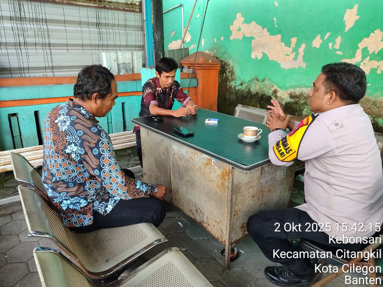 Cilegon - Bhabinkamtibmas Polsek Ciwandan Polres Cilegon Polda Banten Menyapa warga serta Ajak warga Binaannya untuk berperan aktif jaga keamanan lingkungan serta jalin komunikasi agar tercipta situasi aman di daerah hukum Polsek Ciwandan Polres Cilegon Polda Banten,Kamis (02/10/2025).
