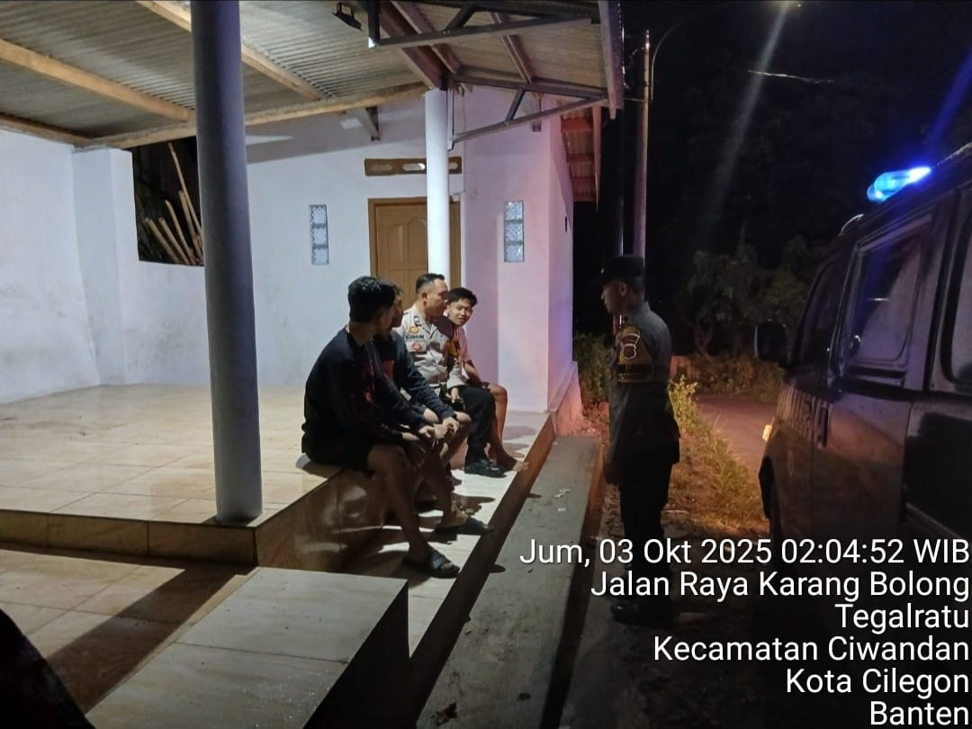 Cilegon - Guna Mencegah Terjadinya Tindak Kejahatan dan Menggiatkan Patroli Pos Ronda Siskamling di Pemukiman warga masyarakat,Personil Polsek Ciwandan Polres Cilegon Polda Banten Mengajak dan memantau pelaksanaan ronda siskamling di lingkungan daerah hukum Polsek Ciwandan, Kamis (02/10/2025).