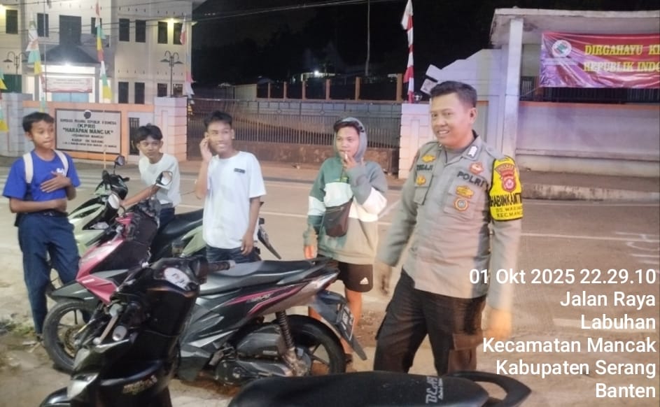 Mancak - Personel Polsek Mancak Polres Cilegon Polda Banten sebagai bentuk mendukung Program Quick Wins Presisi Polri laksanakan Patroli pada malam hari di kewilayahan guna untuk menekan 3C (Curat, Curas, Curanmor) dan gangguan kriminalitas lainnya. Kamis, (02/10/2025)