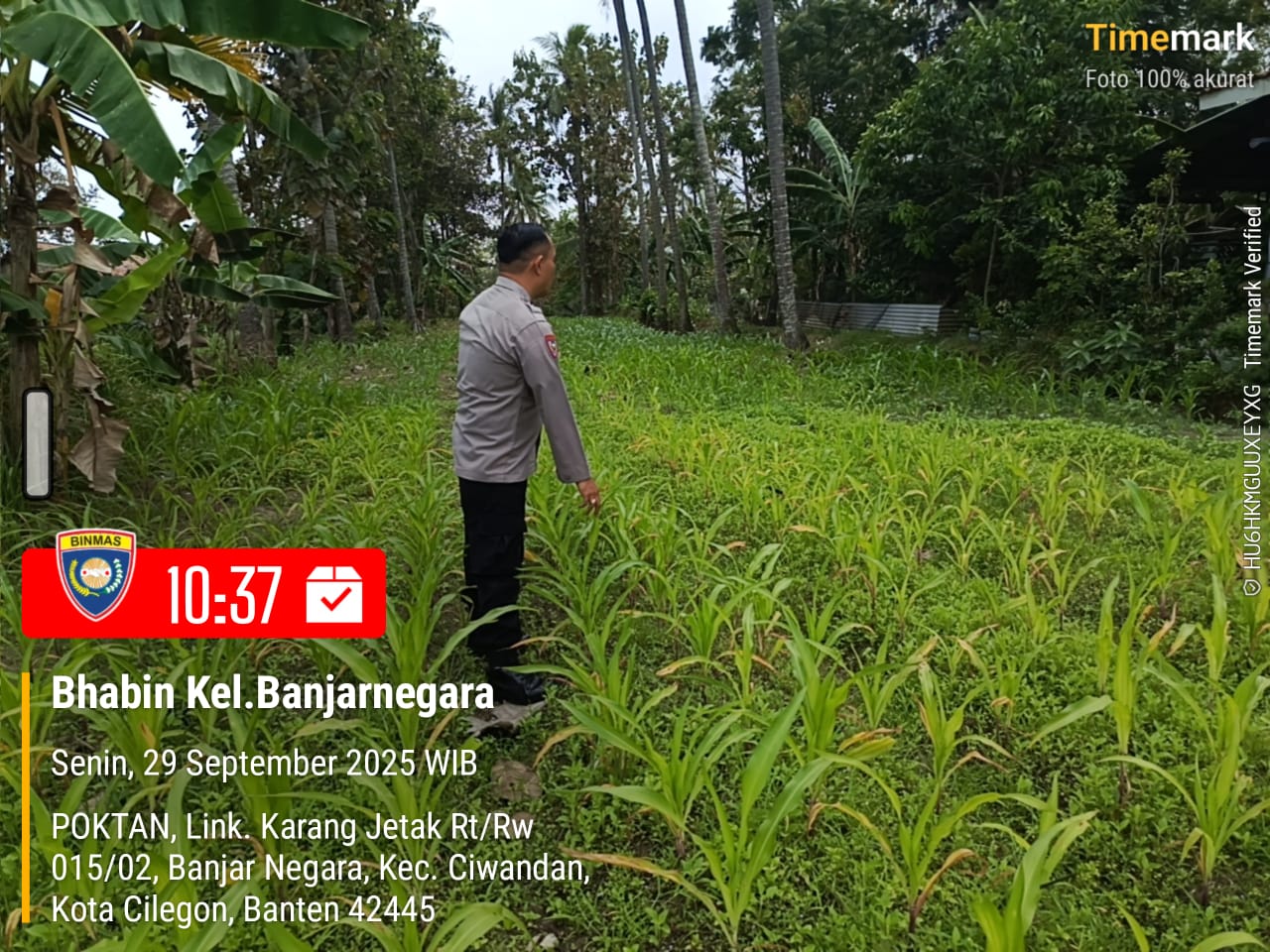 Cilegon - Dalam rangka memberikan dukungan kepada Pemerintah terkait Ketahanan pangan, Bhabinkamtibmas Ciwandan Polres Cilegon Polda Banten melaksanakan Implementasikan Program Asta Cita Presiden dengan fokus pada sektor Pertanian tanaman Jagung dilingkungan Binaan,Jum’at (03/10/2025)