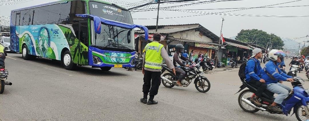 Personil Polsek Anyar Laksanakan Pengaturan Arus Lalu Lintas Perlancar Jalur